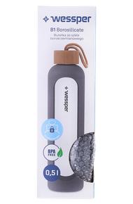 Butelka Wessper Activemax Crystalline 500 ml ze szkła borokrzemowego i bambusowa nakrętka